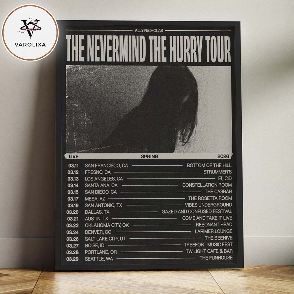 Ally Nicholas Tour Dates Poster The Nevermind The Hurry Tour Across United States Spring 2026 Home Decor Poster Canvas Features: