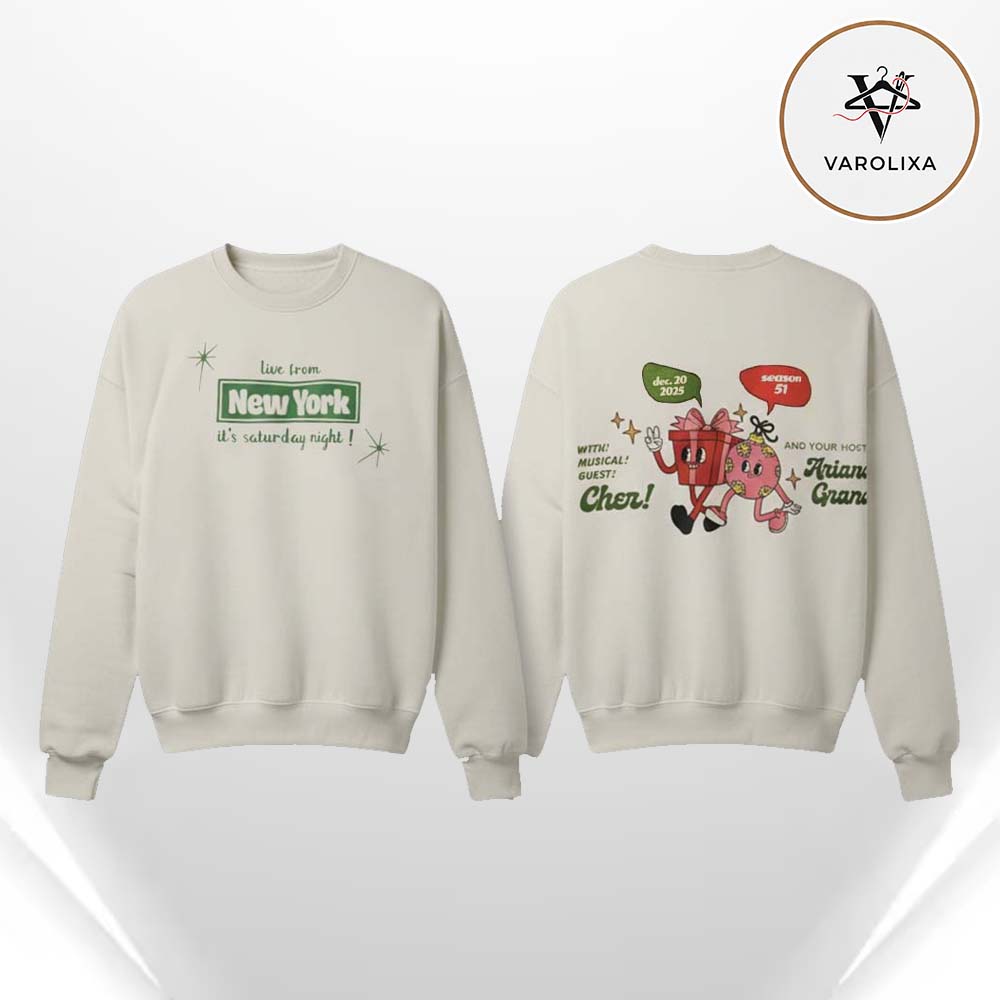 Ariana Grande Live At SNL Live From New York It’s Saturday Night Season 51 On December 20 2025 Two Sides Unisex Sweater Features:
