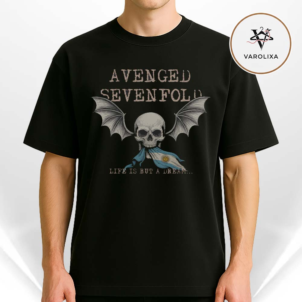 Varolixa Avenged Sevenfold Life Is But A Dream Argentina Flag Bat Wing Skull Gothic Metal 2026 Unisex T-Shirt