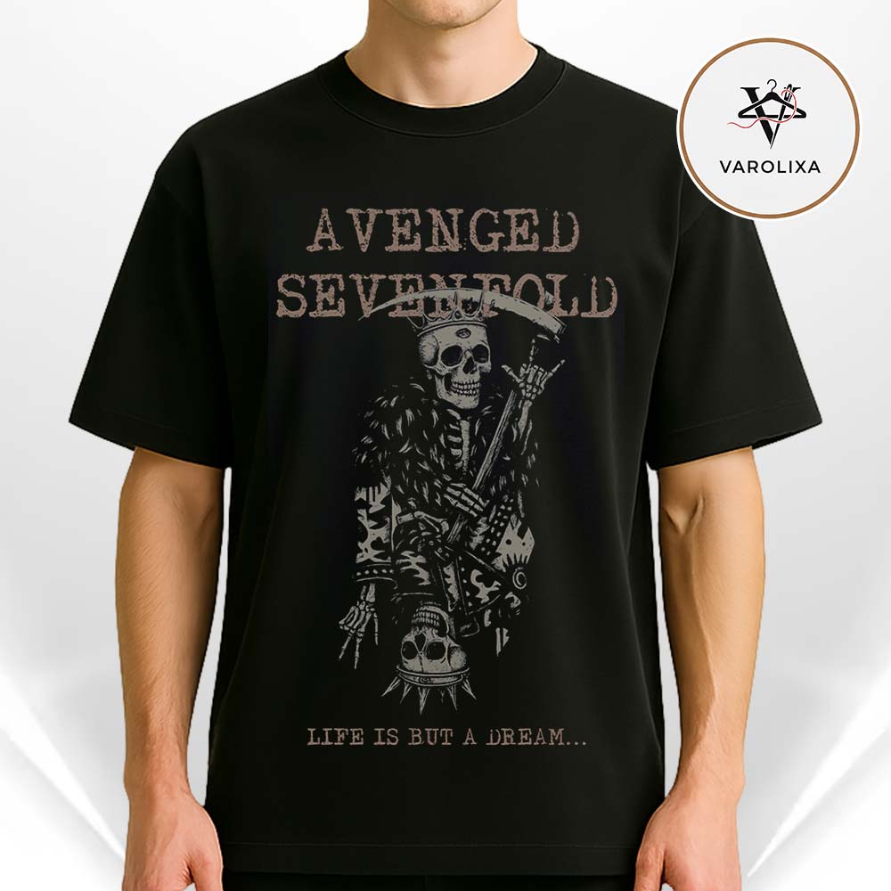 Varolixa Avenged Sevenfold Life Is But A Dream Skeleton King Guitar Dark Gothic 2026 Unisex T-Shirt