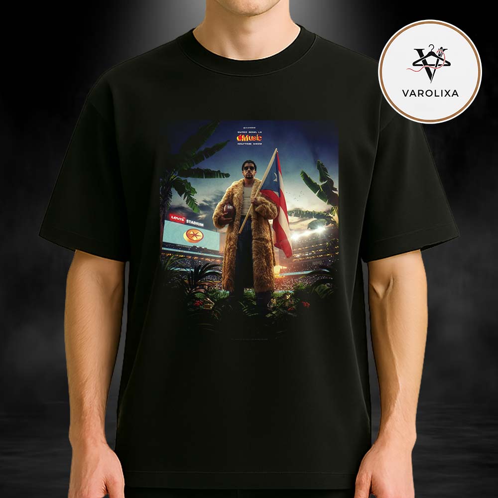 Varolixa Bad Bunny Super Bowl LX Halftime Show Levi’s Stadium Santa Clara California February 8 2026 Puerto Rico Flag Anthem Artwork Unisex T-Shirt