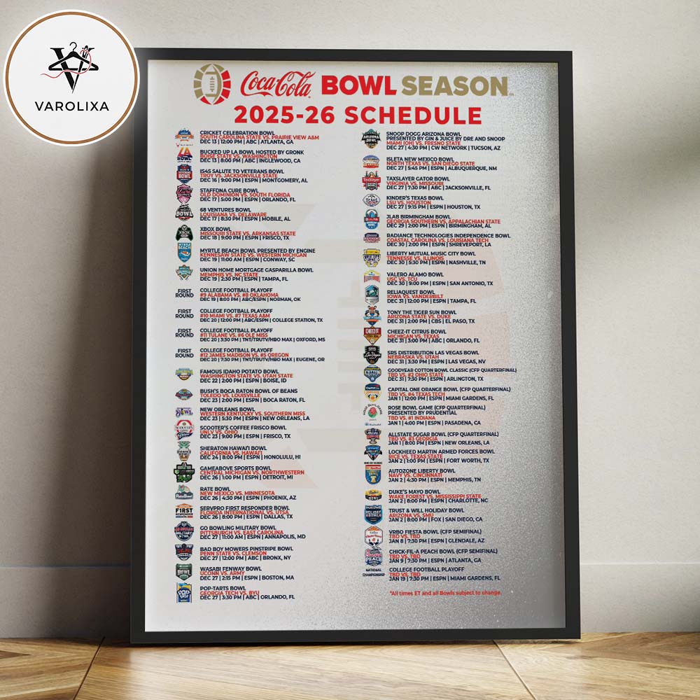 Varolixa: About Bowl Season 2025–26 Complete Schedule Poster NCAA College Football Bowl Game Chart Wall Art Home Decor Poster Canvas Introduction