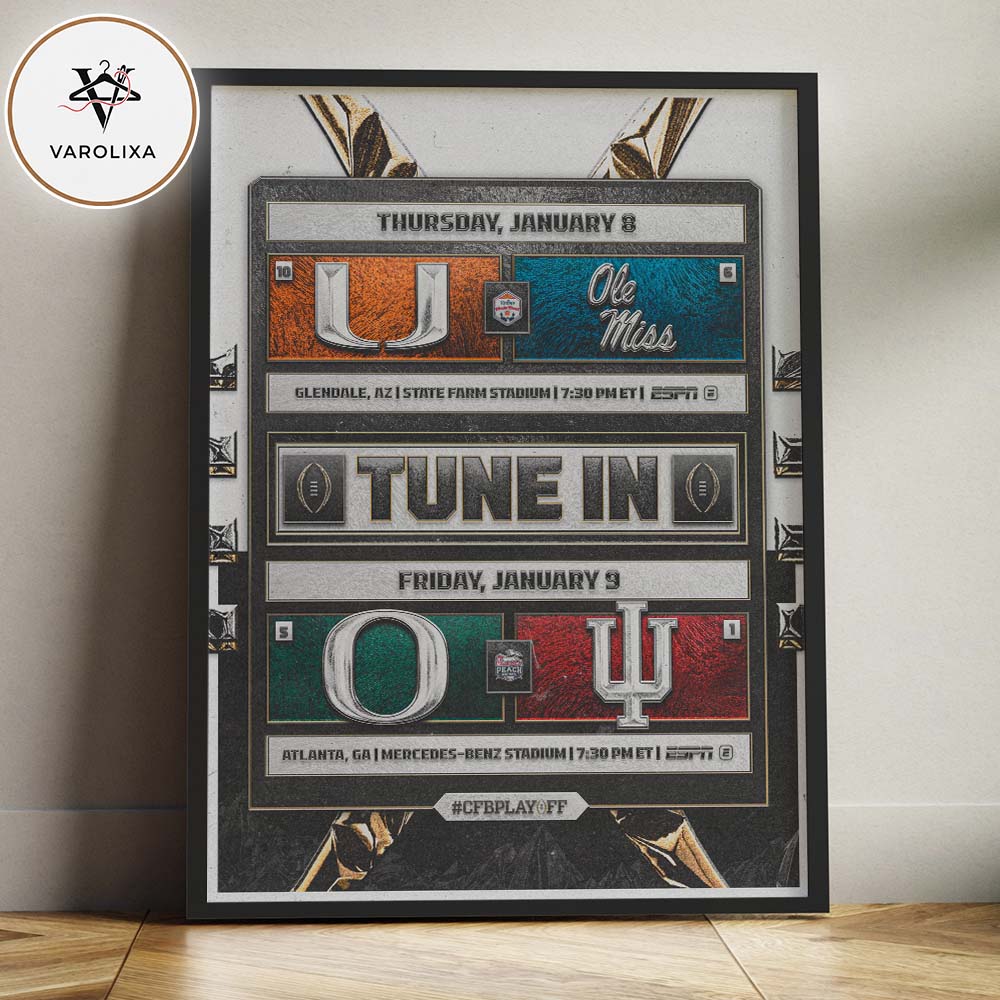 College Football Playoff Poster Miami Hurricanes vs Ole Miss Rebels And Oregon Ducks vs Indiana Hoosiers CFP Bracket Art Home Decor Poster Canvas Features: