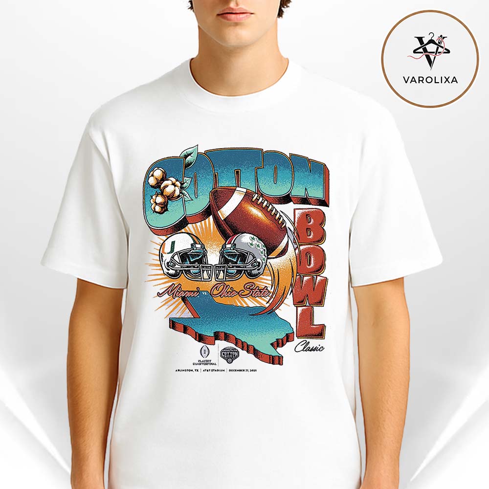 Varolixa Cotton Bowl Classic 2025 Miami Hurricanes Vs Ohio State Buckeyes Vintage Matchup CFP Season Unisex T-Shirt