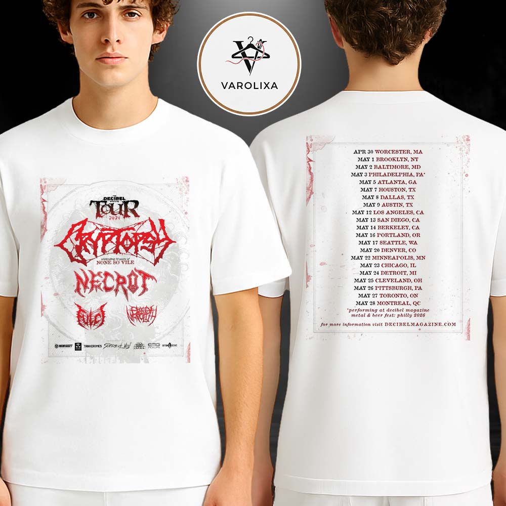 👉 Shop the Cryptopsy Tour 2026 Poster None So Vile 30th Anniversary Necrot Worm Fleshripper Death Metal Two Sides Unisex T-Shirt at Varolixa today.