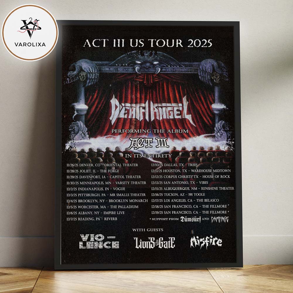 Death Angel ACT III US Tour 2025 Performing Act III In Its Entirety Full Tour Dates With Guests Vio-Lence Lions At The Gate Misfire Home Decor Poster Canvas