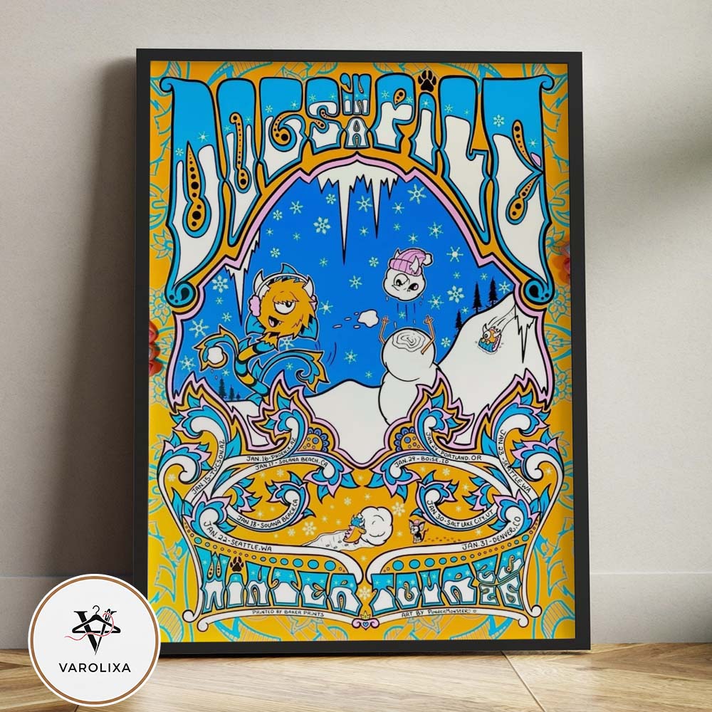 Dogs In A Pile Concert Poster At Various Venues In Multiple Cities USA On January 2026 Winter Tour Snow Monster Artwork Home Decor Poster Canvas Features: