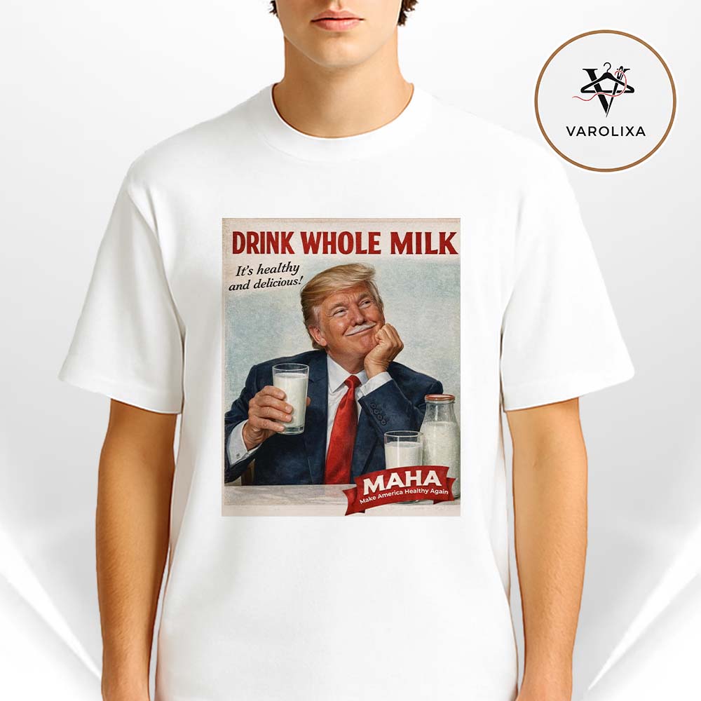Varolixa Donald Trump Retro American Political Satire Milk Advertisement Poster Vintage Propaganda Style Artwork Unisex T-Shirt