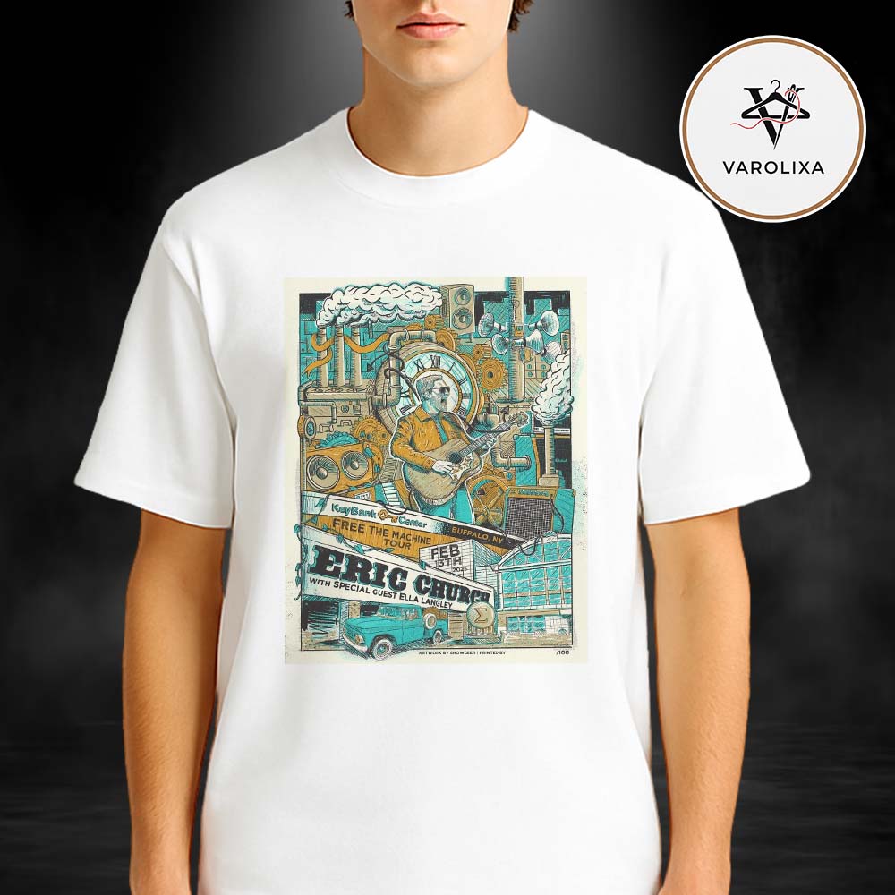 Eric Church Concert Poster At KeyBank Center In Buffalo NY On Feb 13th 2024 Free The Machine Tour Industrial Machine Illustration Unisex T-Shirt