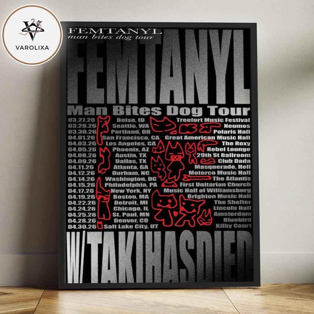 Femtanyl Tour Dates Poster Man Bites Dog Tour Across USA March–April 2026 Home Decor Poster Canvas