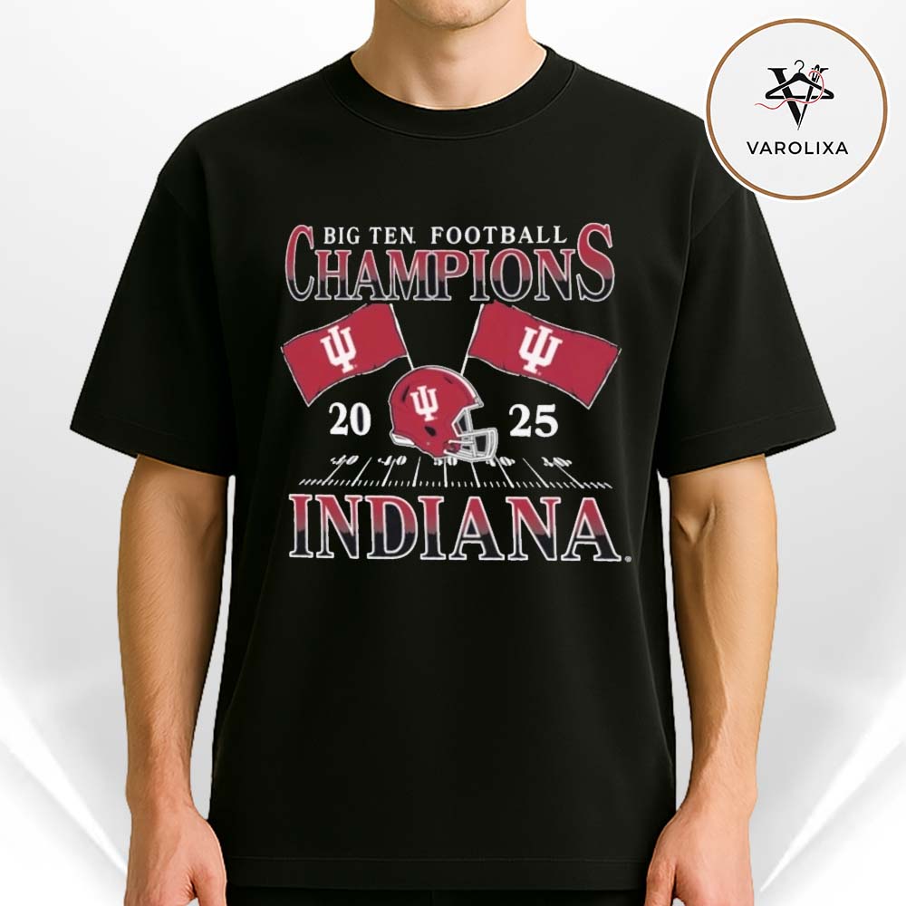 👉 Shop the Indiana Hoosiers 2025 Big Ten Football Champions Flags Unisex T-Shirt at Varolixa today.