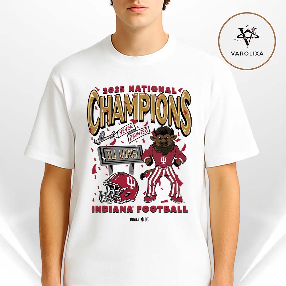 👉 Shop the Indiana Hoosiers 2025 National Champions Never Daunted Mascot Celebration Design Unisex T-Shirt at Varolixa today.