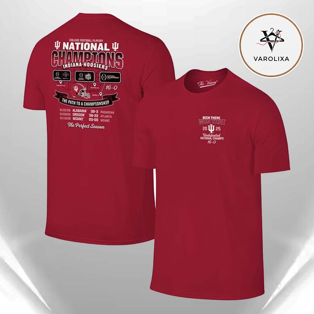 👉 Shop the Indiana Hoosiers Red 2025 CFP National Champions Path To A Championship Two Sides Unisex T-Shirt at Varolixa today.