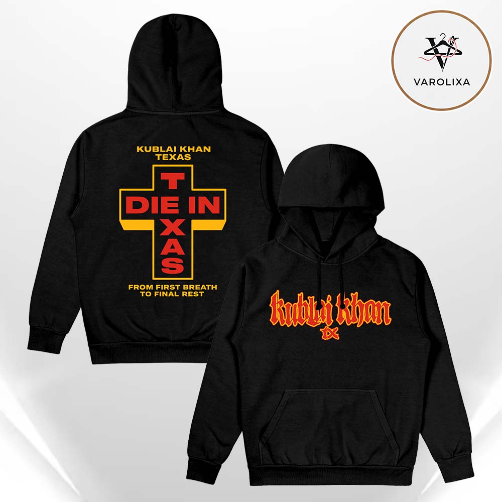 👉 Shop the Kublai Khan TX Die In Texas Black Two Sides Unisex Hoodie at Varolixa today.