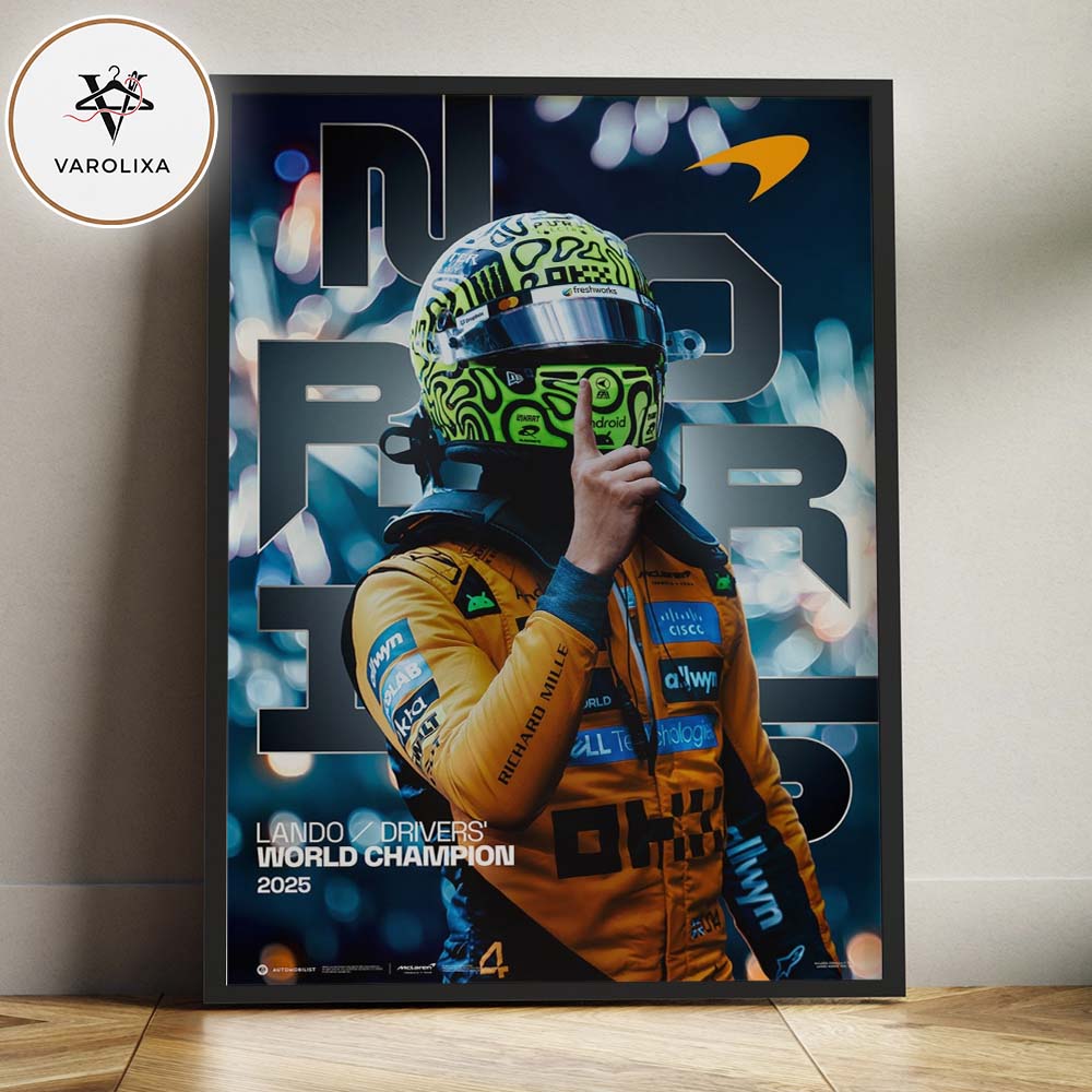 Lando Norris Scuderia Ferrari Drivers World Champion 2025 McLaren Helmet Silence Pose Racing Art Home Decor Poster Canvas Features: