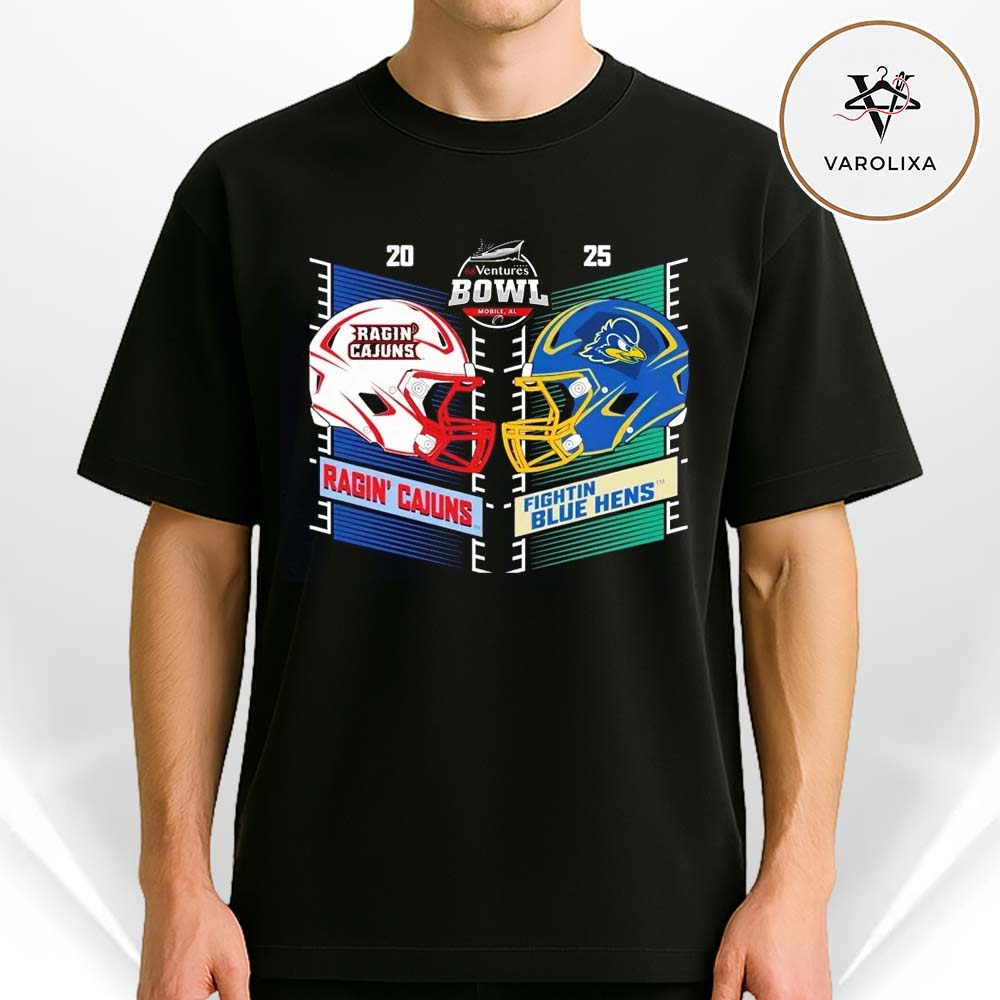 Varolixa Louisiana Ragin Cajuns Vs Delaware Blue Hens 2025 68 Ventures Bowl Ventures Bowl Head To Head Helmet Unisex T-Shirt