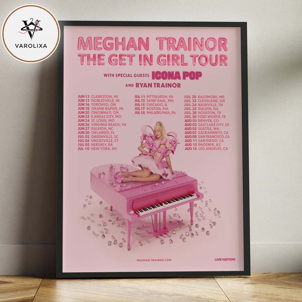 Celebrate Meghan Trainor’s The Get In Girl Tour 2024 with this premium poster/canvas featuring her North America shows across the USA and Canada. A perfect collectible for pop-music fans and modern home décor enthusiasts.