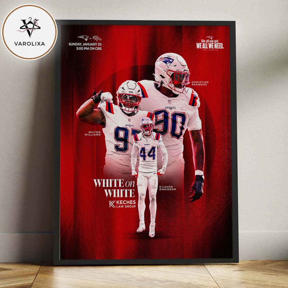 New England Patriots White On White 2025 Playoffs Poster Christian Barmore Milton Williams K’Lavon Chaisson NFL Football Home Decor Poster Canvas