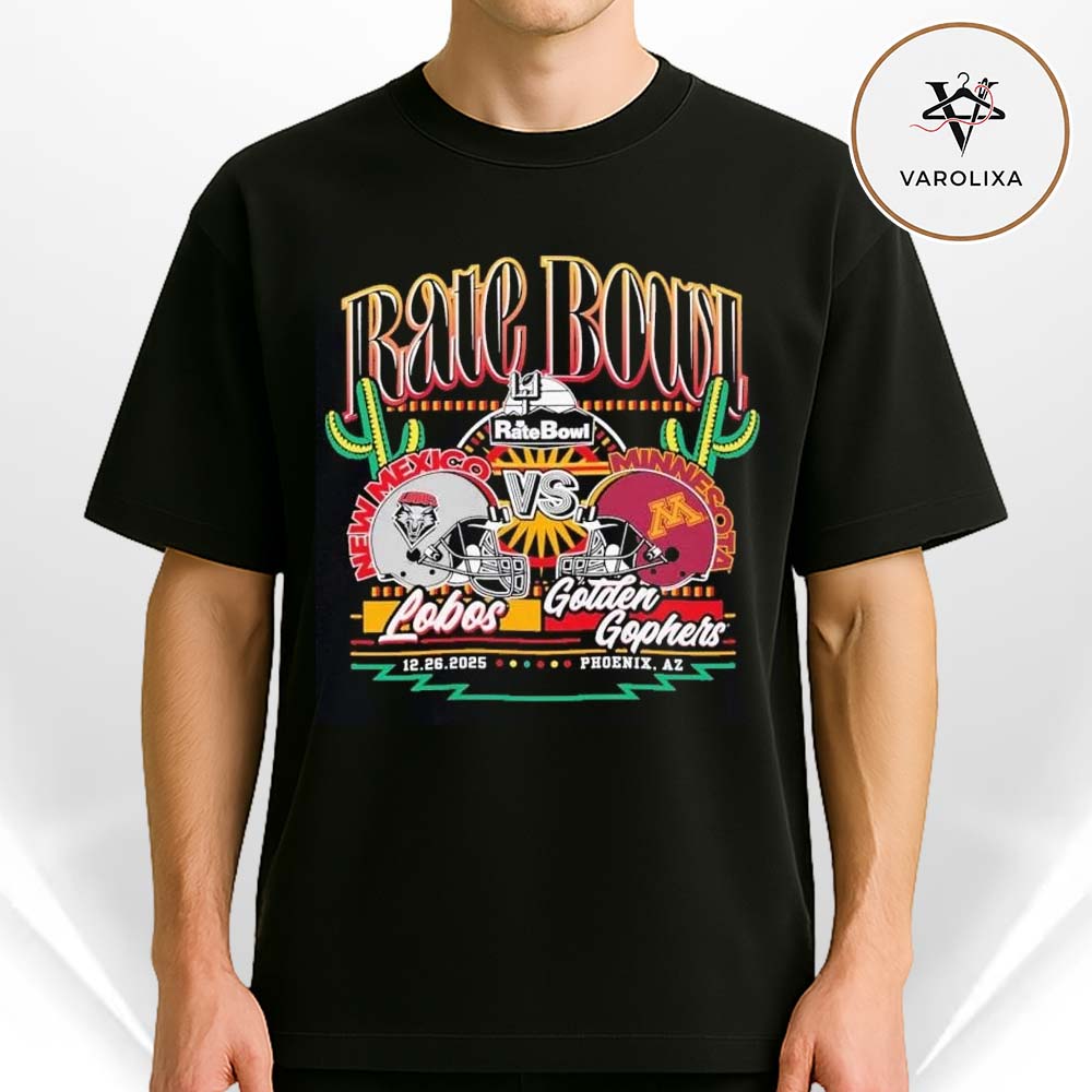 👉 Shop the New Mexico Lobos vs Minnesota Golden Gophers 2025 Rate Bowl Party On Phoenix AZ Unisex T-Shirt at Varolixa today.