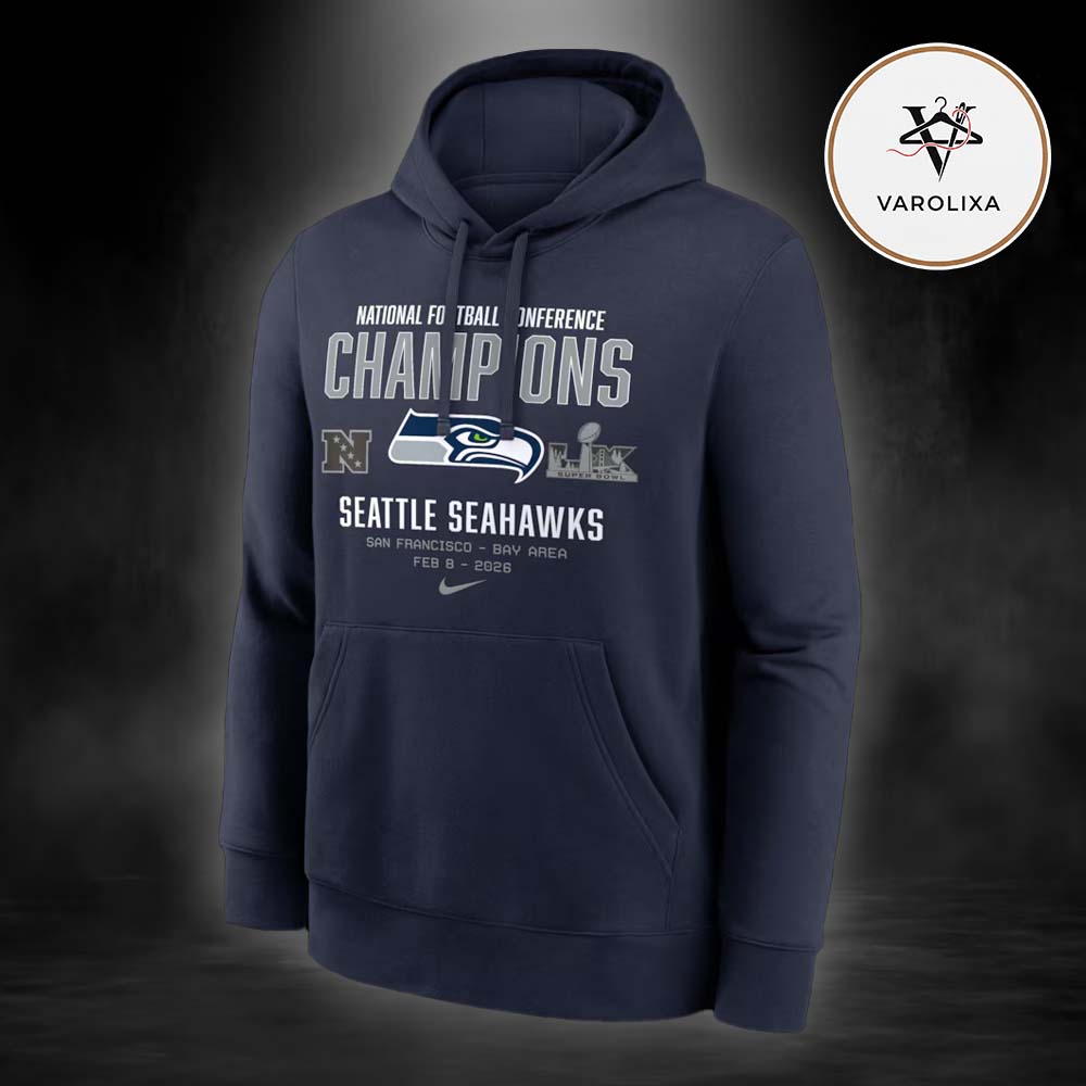 Nike College Navy Seattle Seahawks 2025 NFC Champions Team Nation Unisex Hoodie