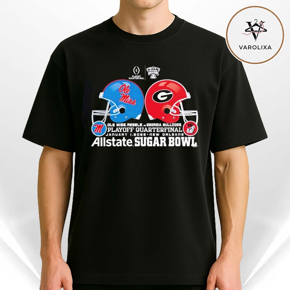 👉 Shop the Ole Miss Rebels vs. Georgia Bulldogs 2026 College Football Playoff Sugar Bowl Matchup Bound Unisex T-Shirt at Varolixa today.