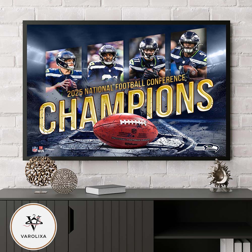 Varolixa: About Seattle Seahawks NFC Champions 2025 National Football Conference Champions Team Collage Trophy Football Design Home Decor Poster Canvas Introduction