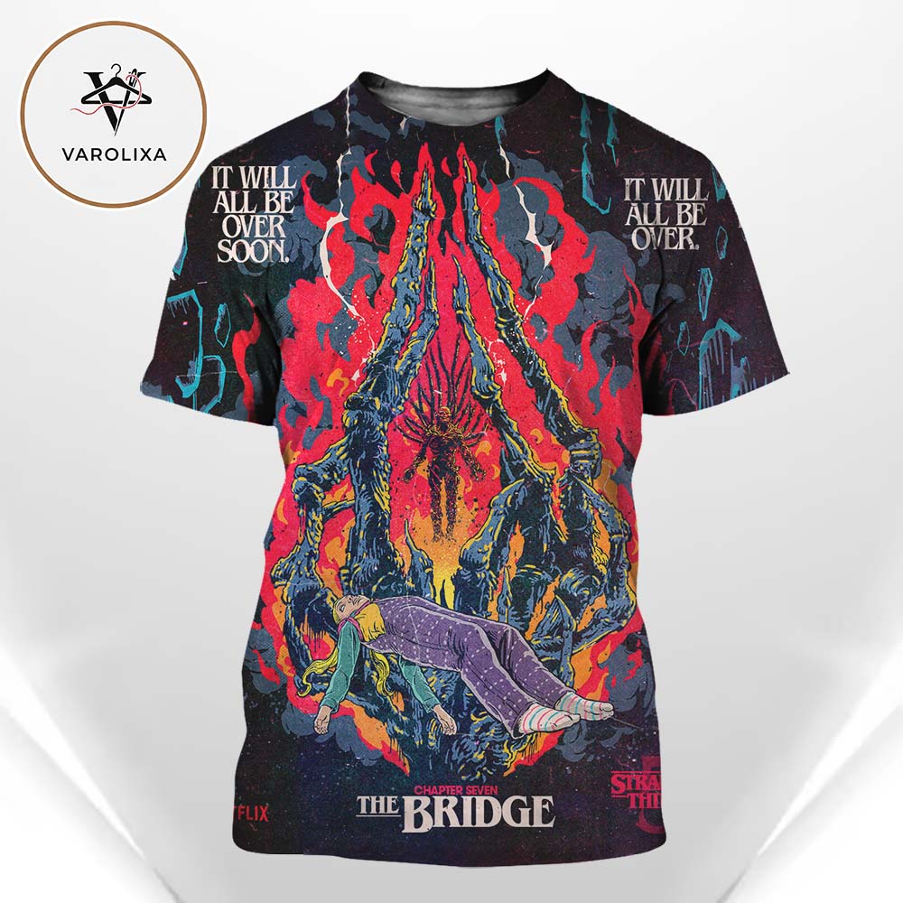 Stranger Things 5 Chapter Seven The Bridge Dark Horror Fan Art 2025 All Over Print Shirt Features: