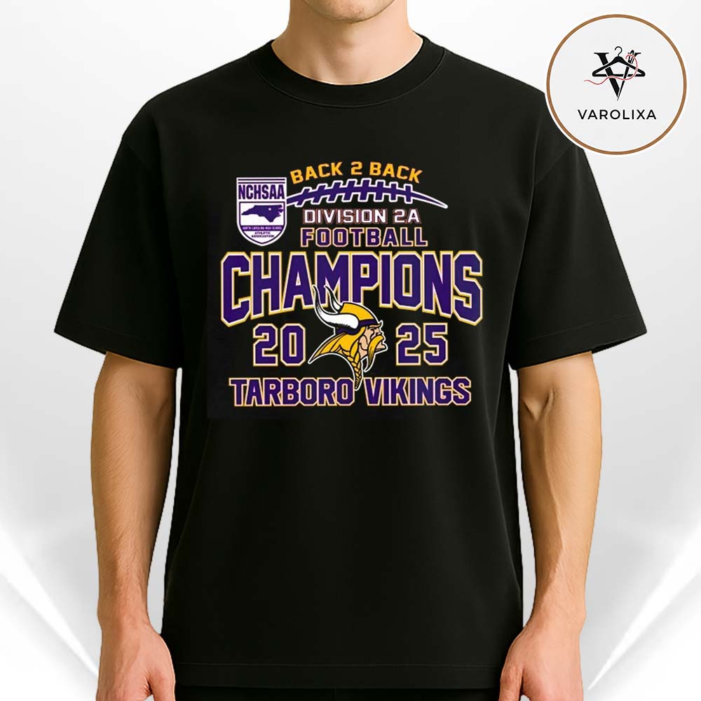 👉 Shop the Tarboro Vikings 2025 Back 2 Back Division 2A Football Champions Unisex T-Shirt at Varolixa today.