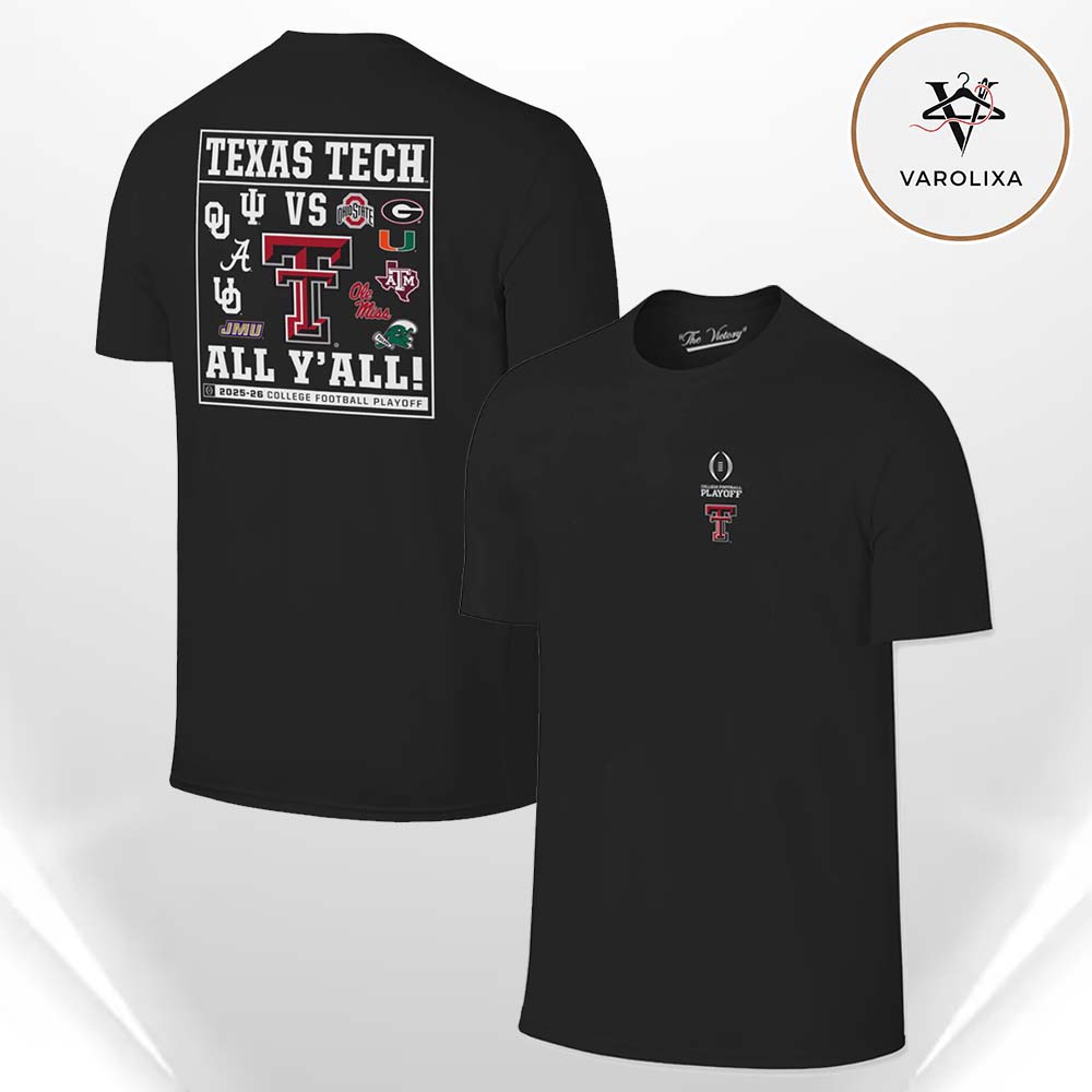 Varolixa Texas Tech Raiders 2025 CFP Framed 12 Teams NFL Bowl Season Two Sides Unisex T-Shirt