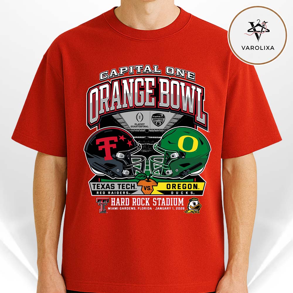 Texas Tech Red Raiders Vs Oregon Ducks 2025 Orange Bowl Dueling Helmets vs. Oregon NFL Season Unisex T-Shirt