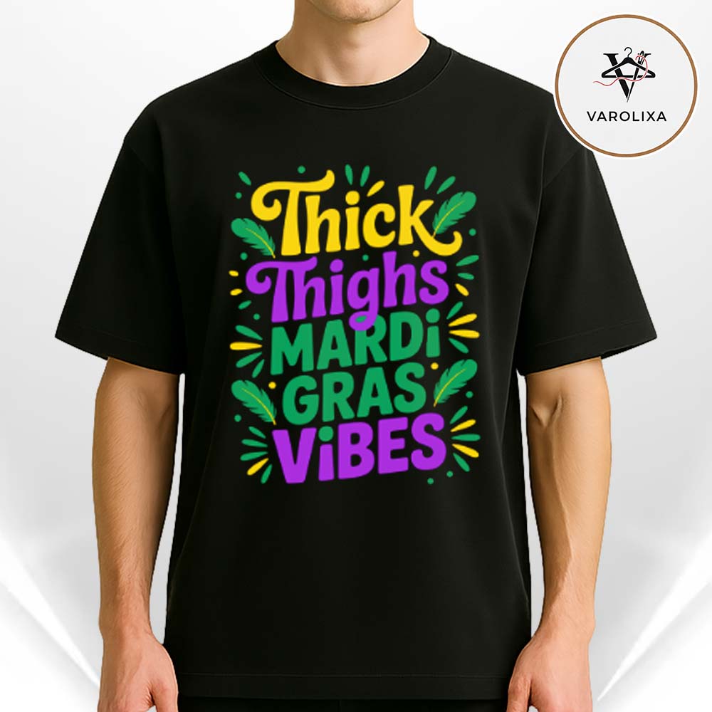 Thick Thighs Mardi Gras Vibes Unisex T Shirt 2025 Funny Carnival Party Outfit