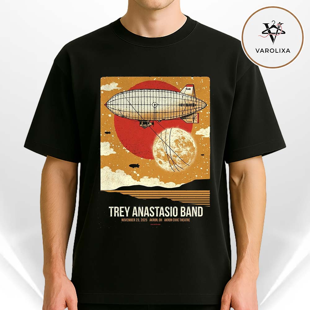 More than just a T-shirt, this piece is a wearable memory of the Trey Anastasio Band’s 2025 Akron performance. Whether you were there in person or simply admire Trey’s musical legacy, this design brings the spirit of that night into your wardrobe. A must-have collectible for jam-band fans and concert-art enthusiasts.
