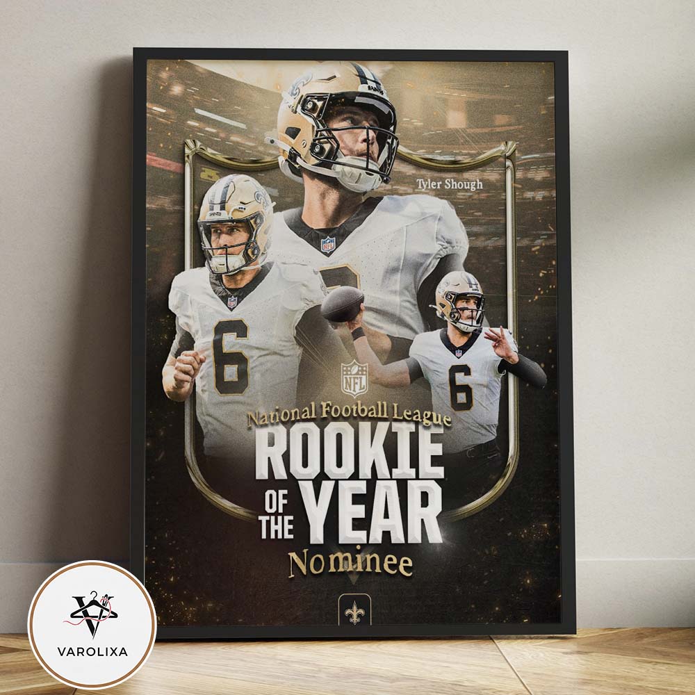 Tyler Shough New Orleans Saints Quarterback No 6 NFL Rookie Of The Year Nominee Gold Frame Edition Home Decor Poster Canvas