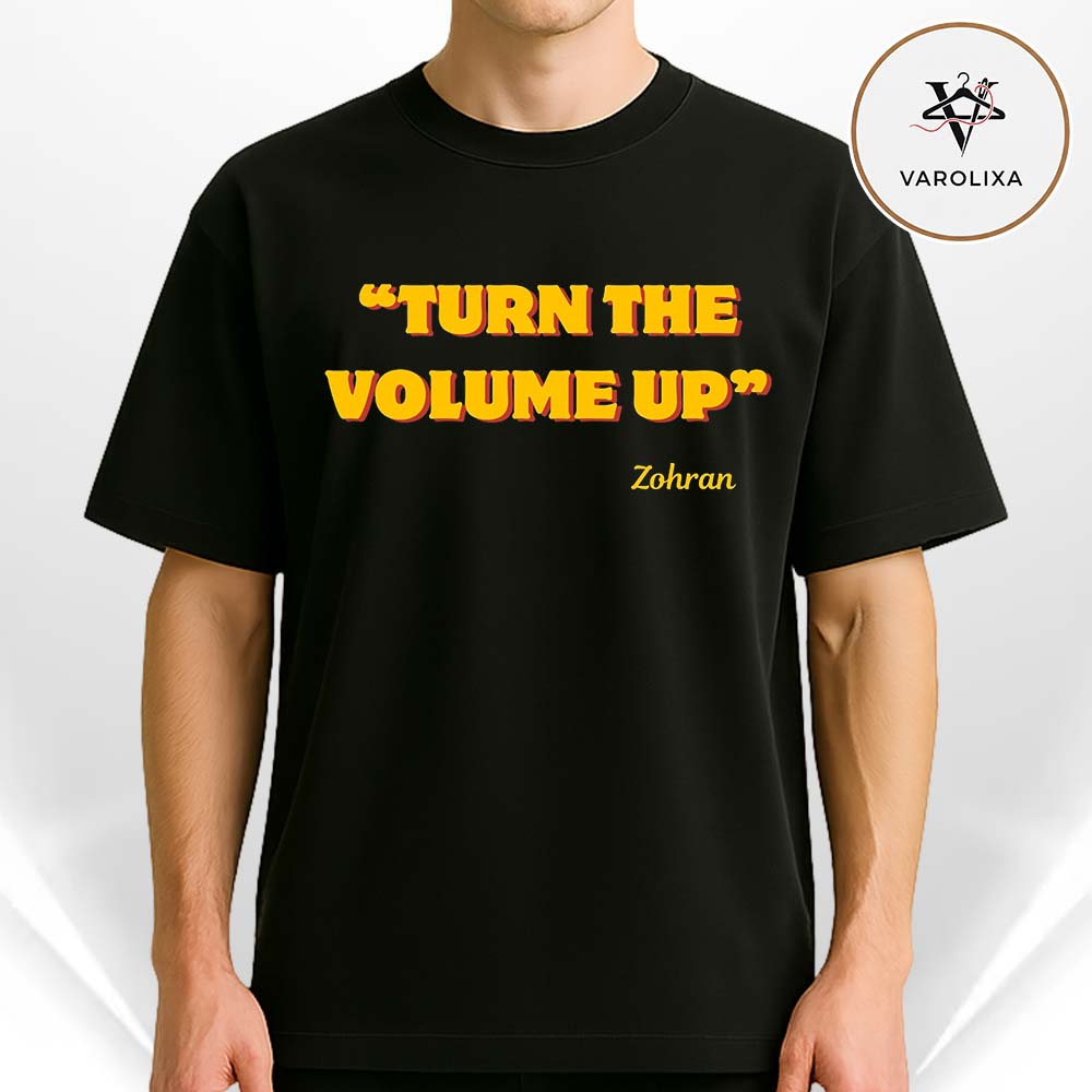Zohran Mamdani Turn The Volume Up Shirt NYC Campaign Merch 2026 Political Awareness Unisex T-Shirt Features: